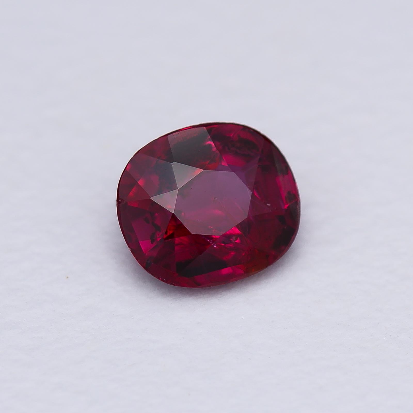 Juicy and colorful material whose origin is likely from Thailand, based on the inclusions. Treatment unknown but likely heated. Very bright and well cut!