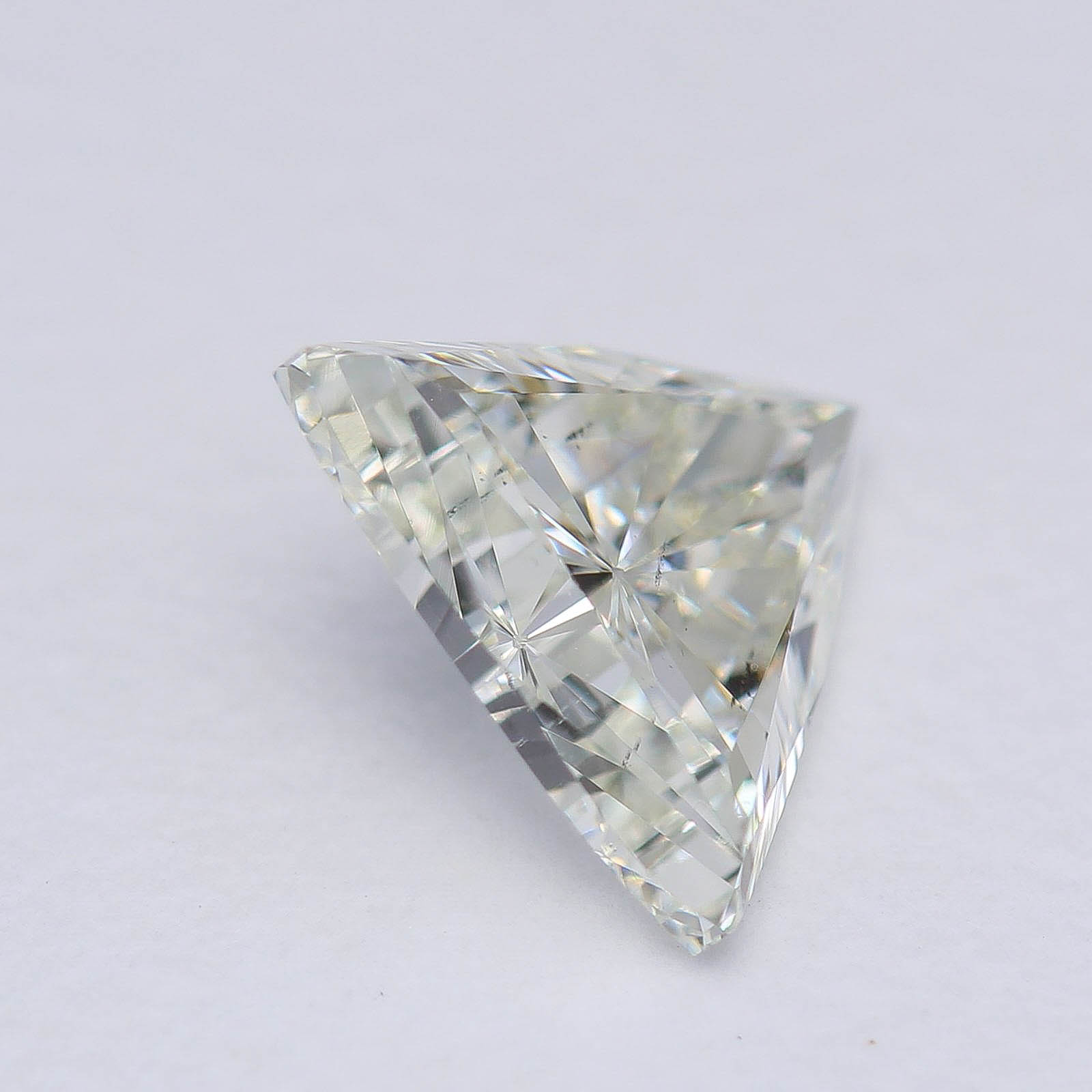 Provenance: Post-Consumer Recycled from a contemporary ring. Very well preserved pointy end on this bright Trillion diamond. Cut with great symmetry and balance in mind and superb light performance.