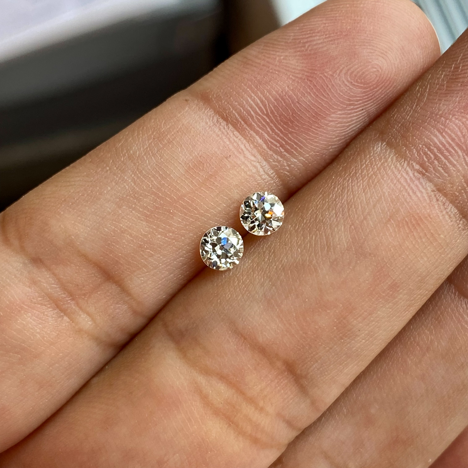 Lovely matched pair of old Europeans for you. We slowly collect our oldies and take our time sorting and carefully matching them (tough task!), so that they are ready for your earring designs or perfect for side stones on that engagement ring custom project.