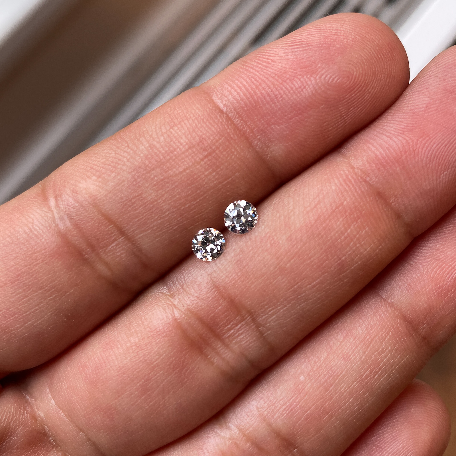 Lovely matched pair of old Europeans for you. We slowly collect our oldies and take our time sorting and carefully matching them (tough task!), so that they are ready for your earring designs or perfect for side stones on that engagement ring custom project.