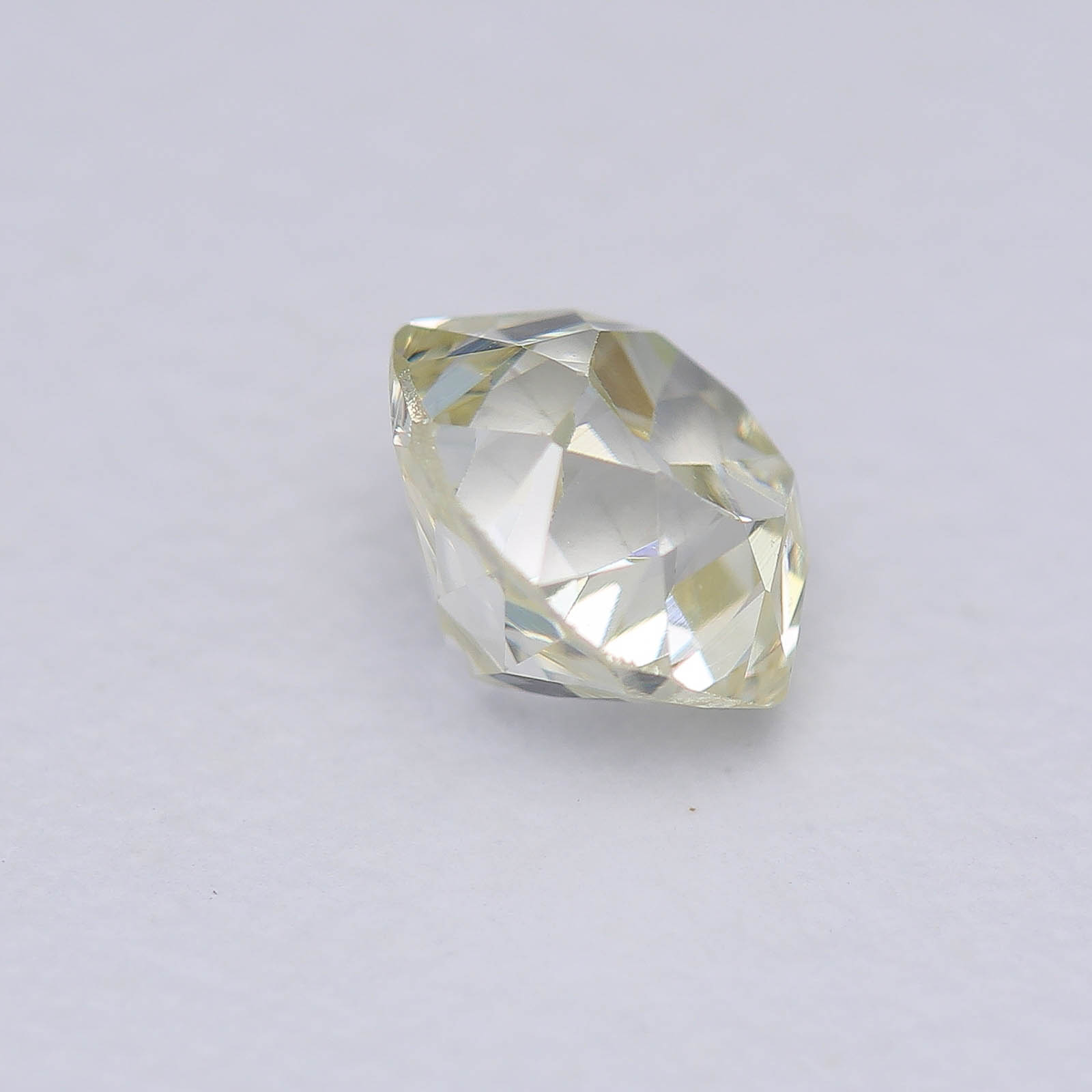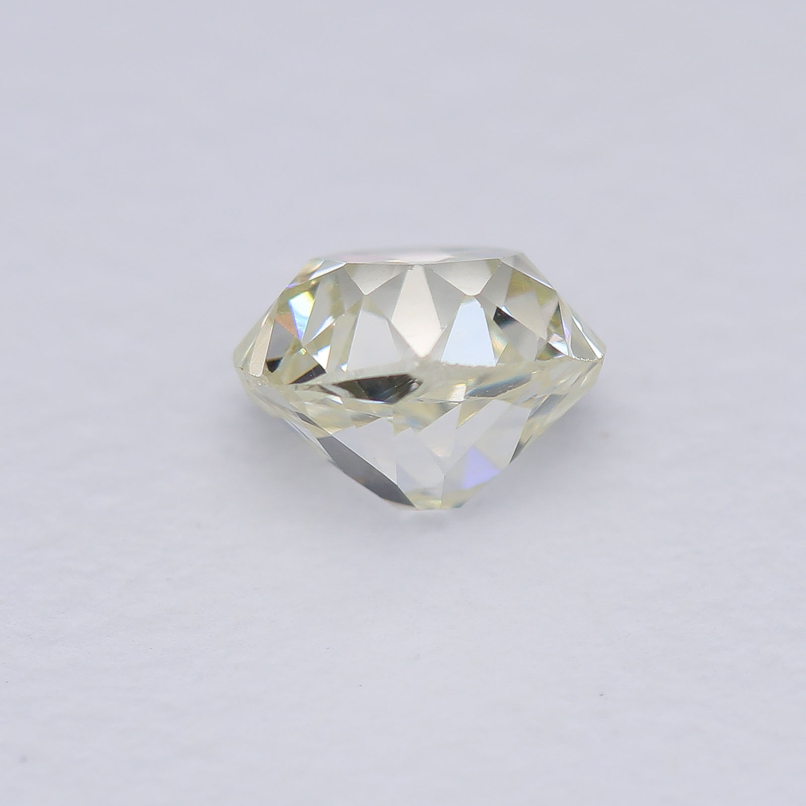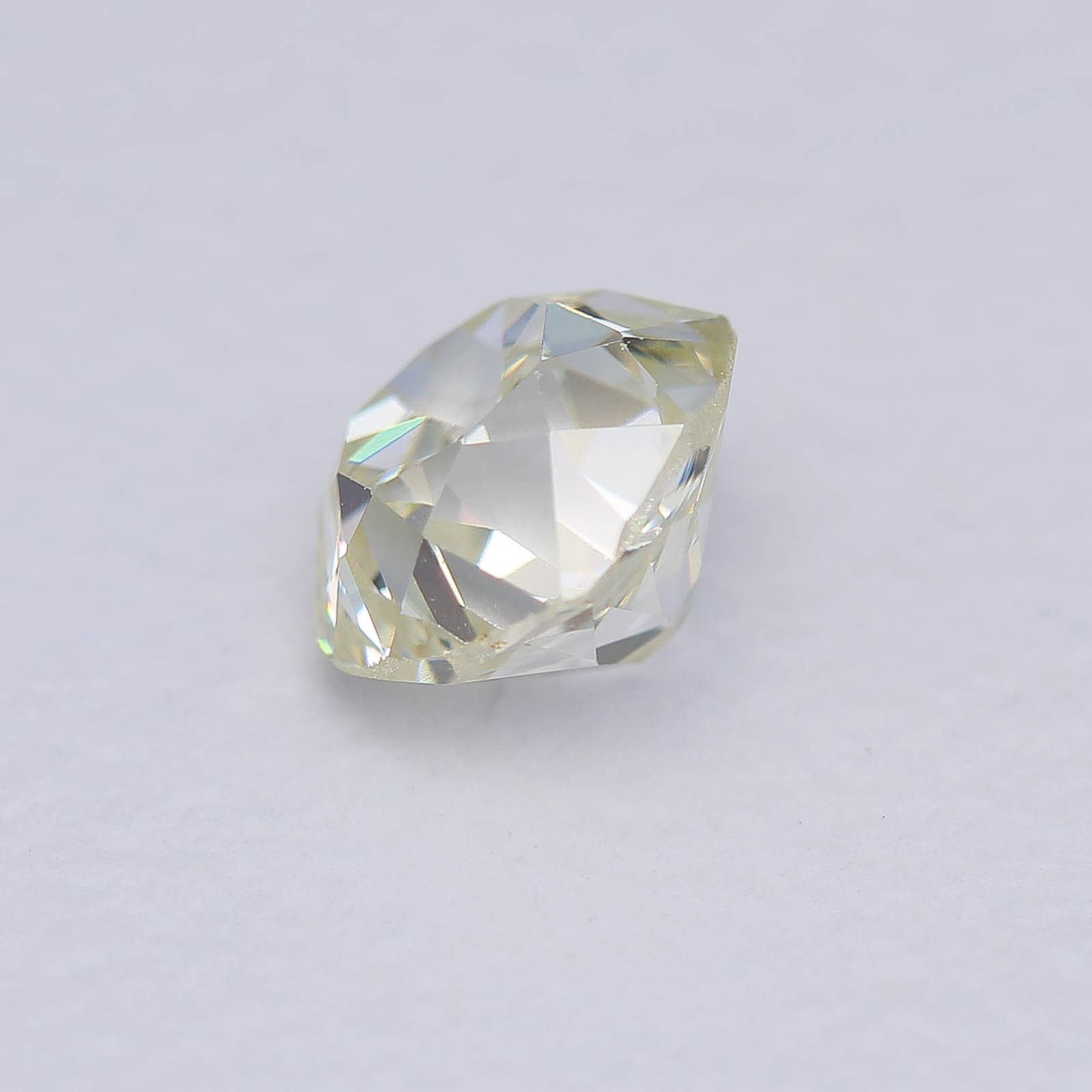 Wonky and Elegant are the first adjectives that come to mind... Very towering proportions on this oldie, typical of late 18th century cutting styles. Large pops of light and a pleasant shape help mask the warmer bodycolor of this diamond.