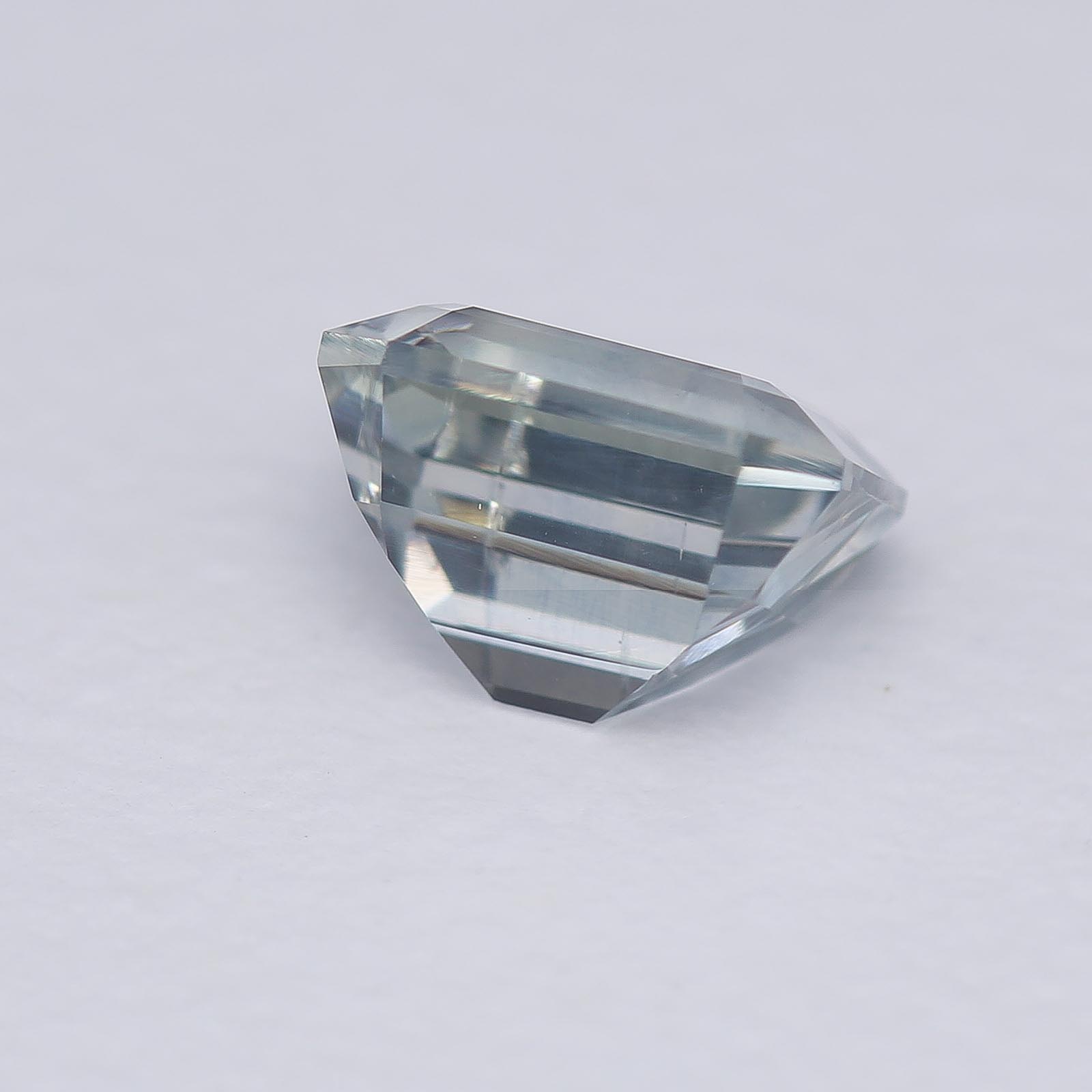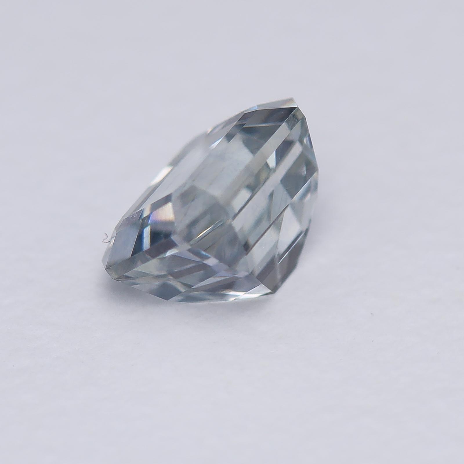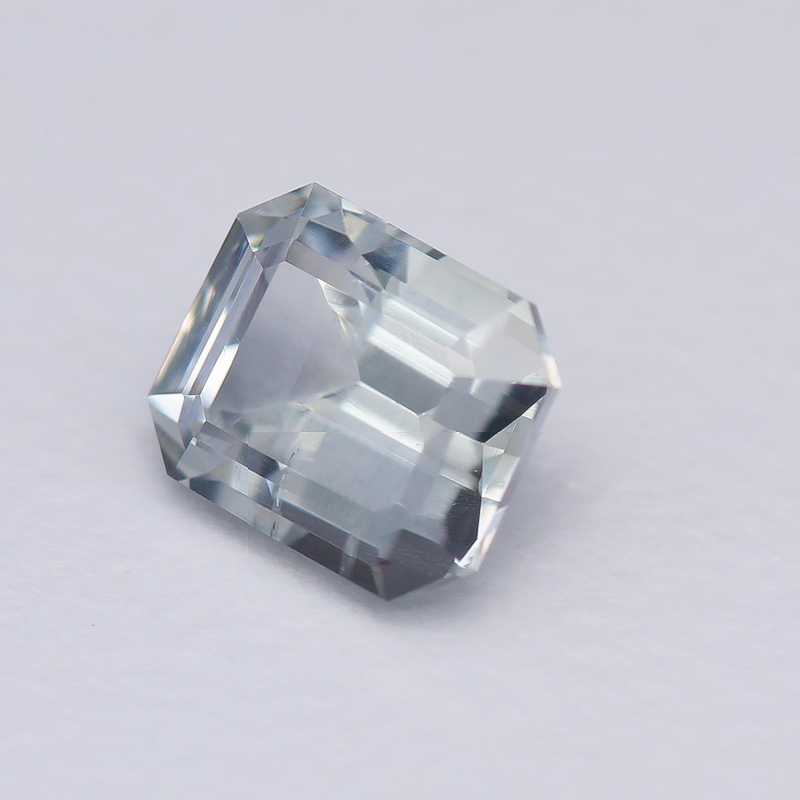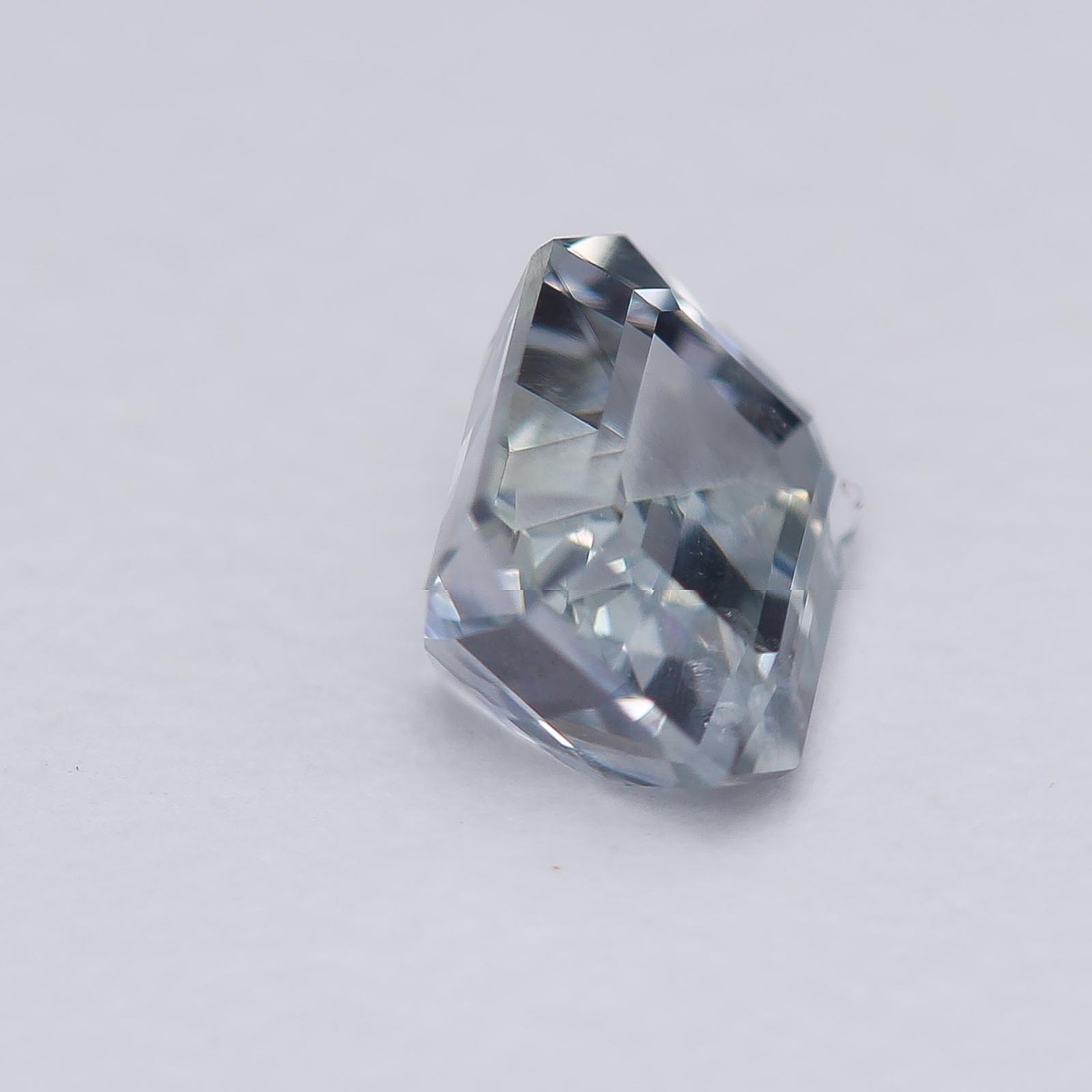 Bodycolor is light blue with strong gray undertones in fluorescent light with slight shift to pale violet in daylight and incandescent light. Super clean and crisp sapphire!