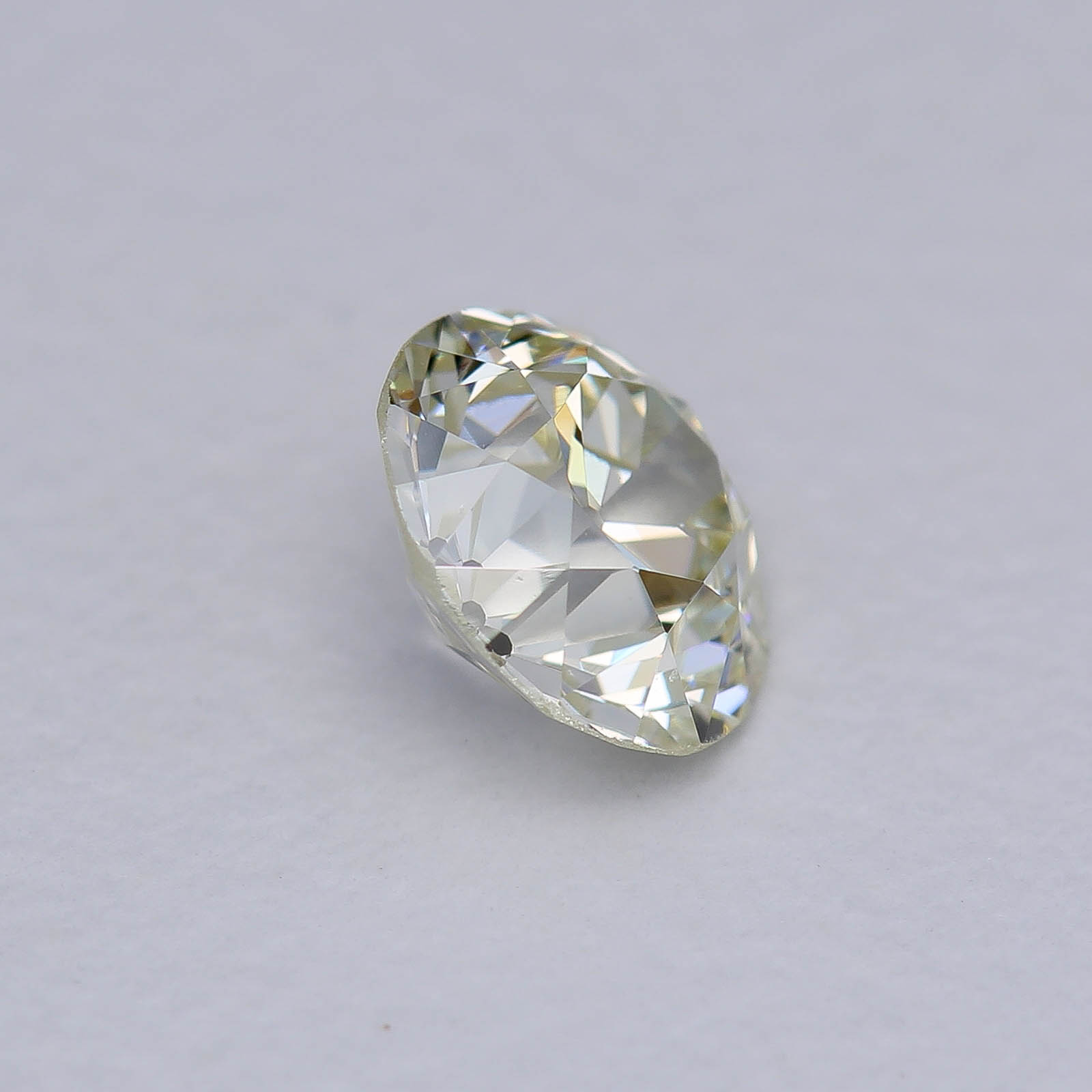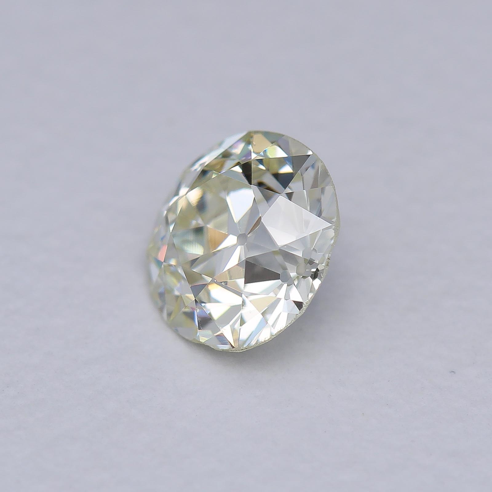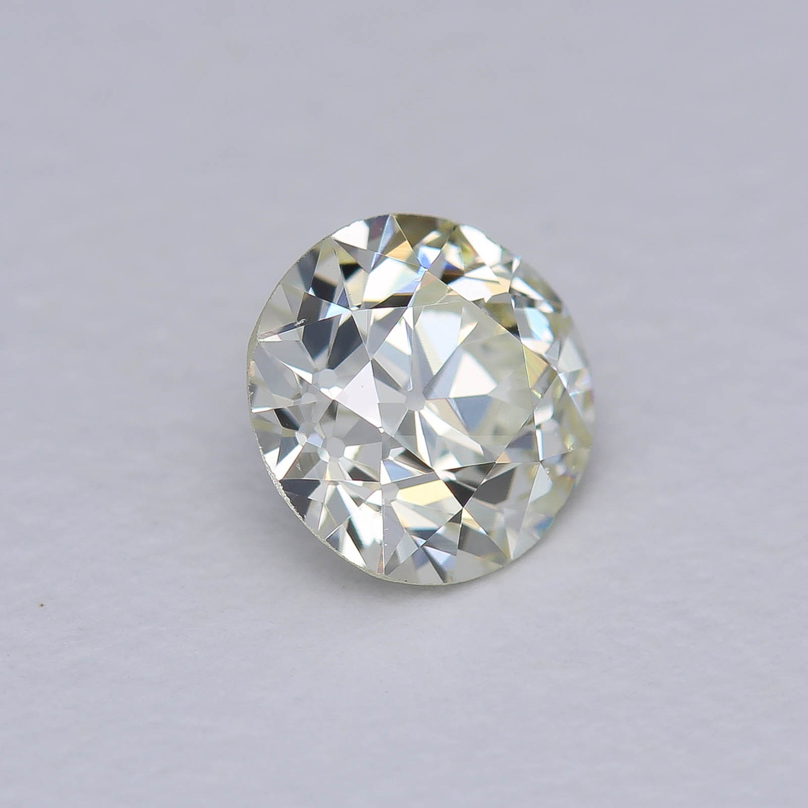 Provenance: From a post-consumer ring. Likely from a late deco design this lovely Old European faces up much whiter than it's actual bodycolor! Beautiful and sparkly.