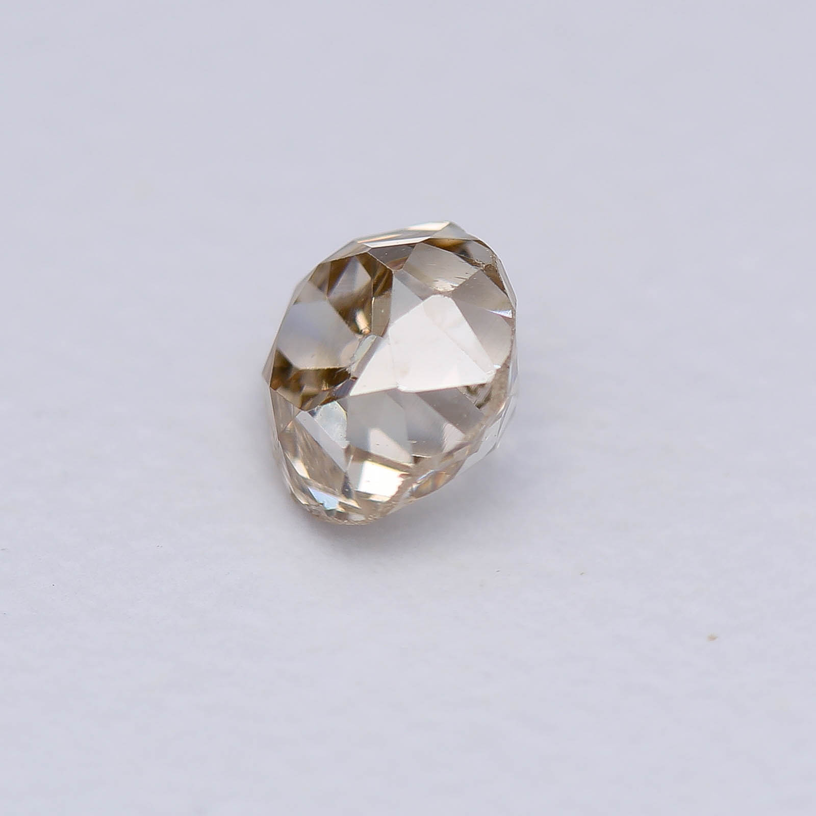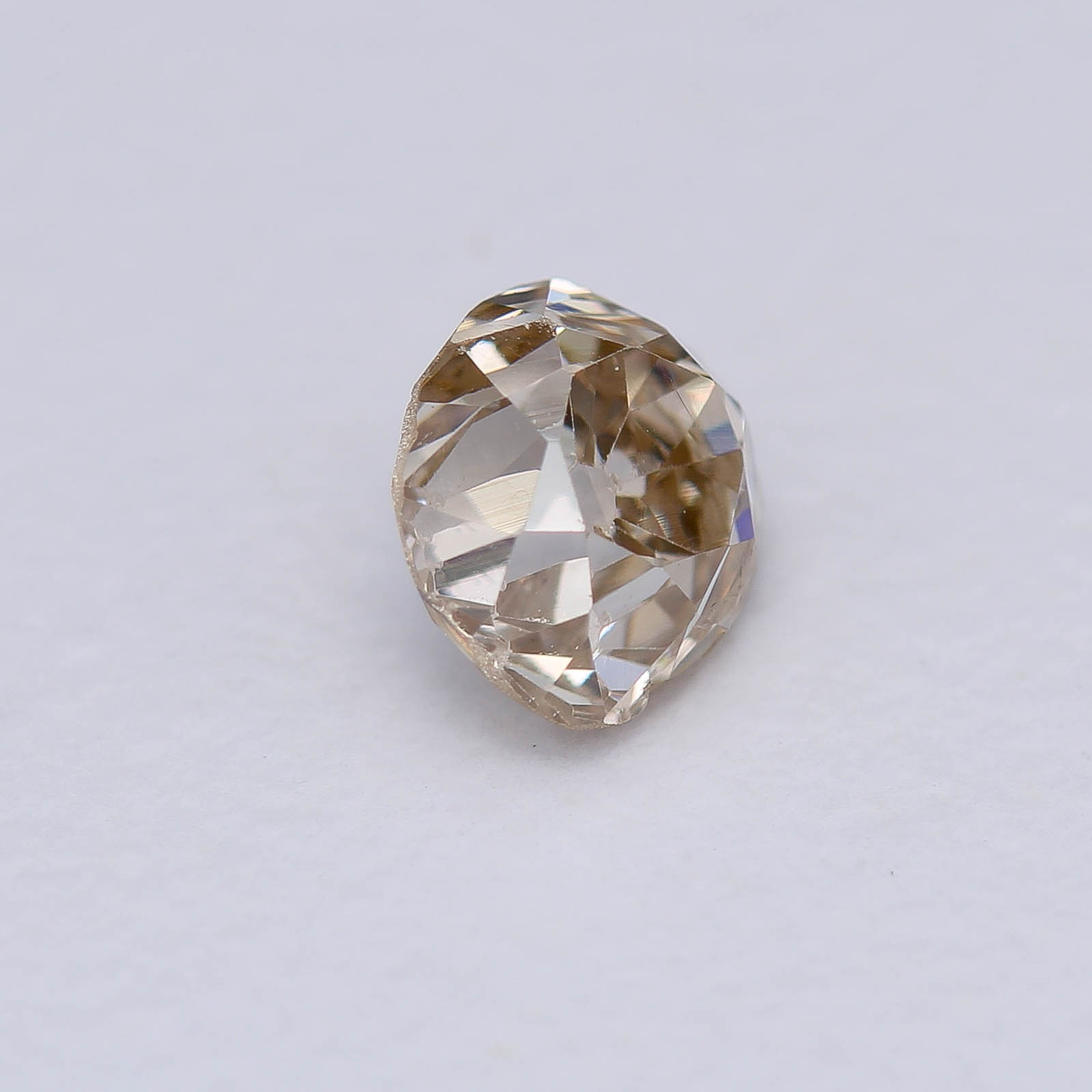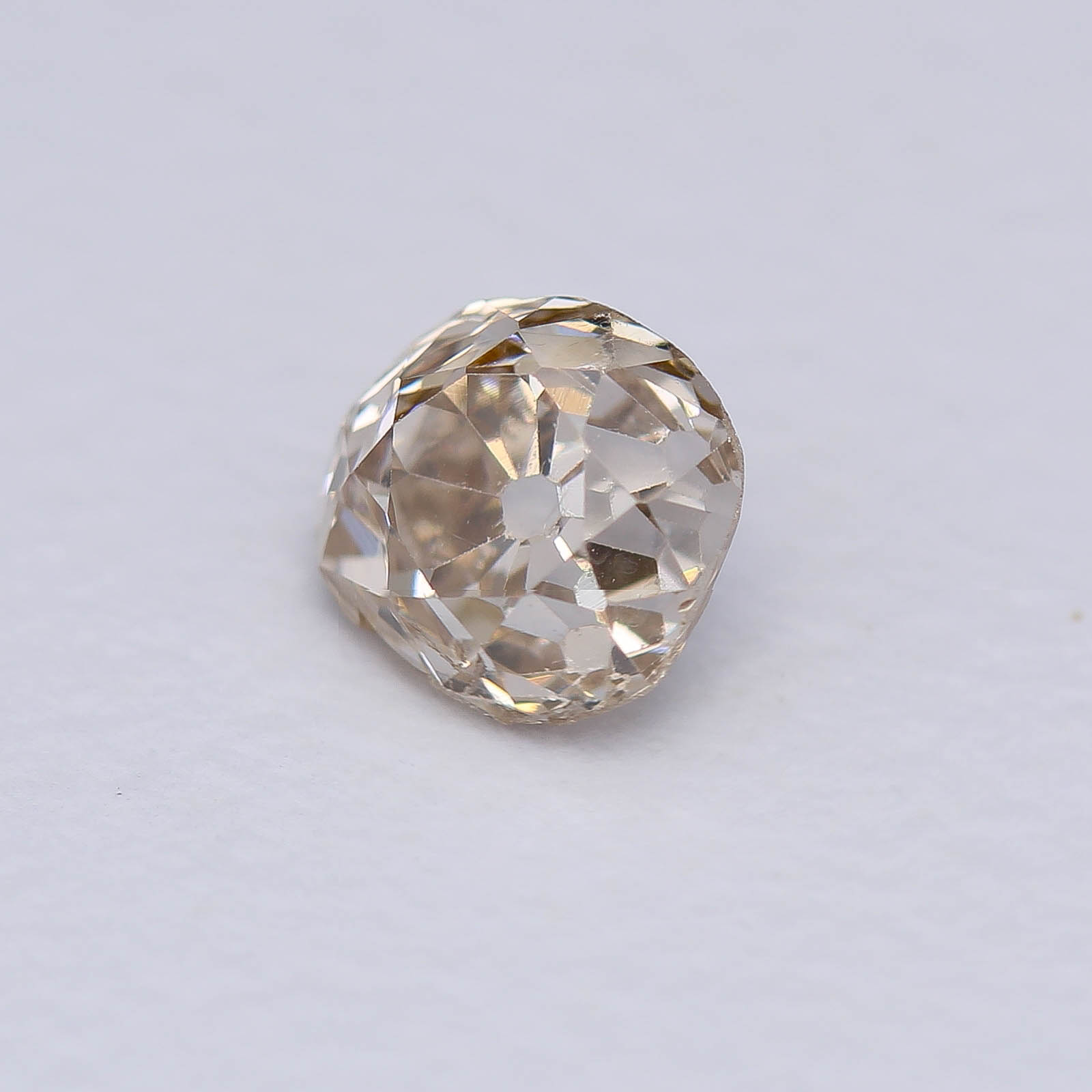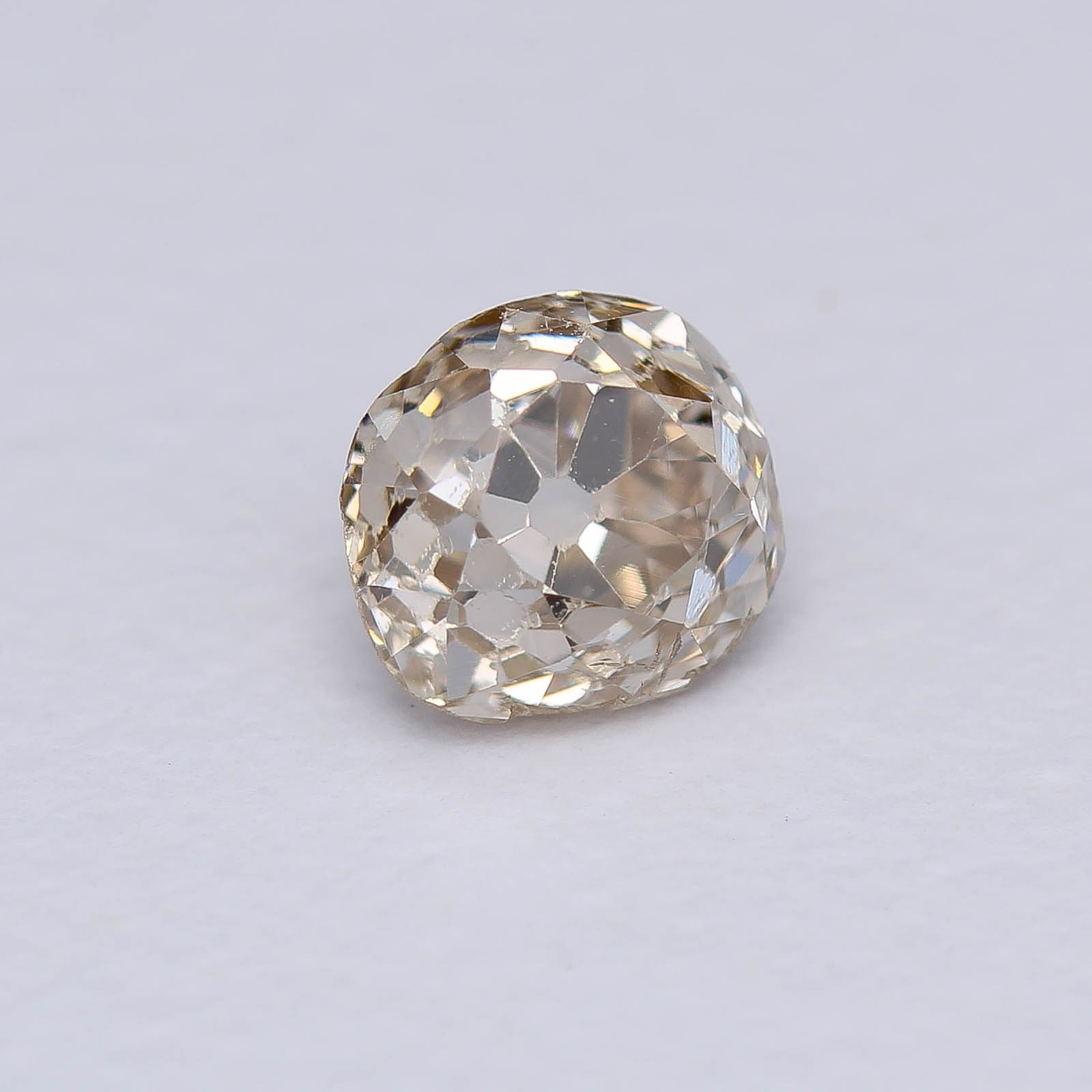 Nice cushiony outline on this rather wonky old miner, thanks to a newly faceted girdle. Faceting a girdle is quite the unconventional move for us on these oldies but we felt the need to liven it up. In this case, quite the improvement!