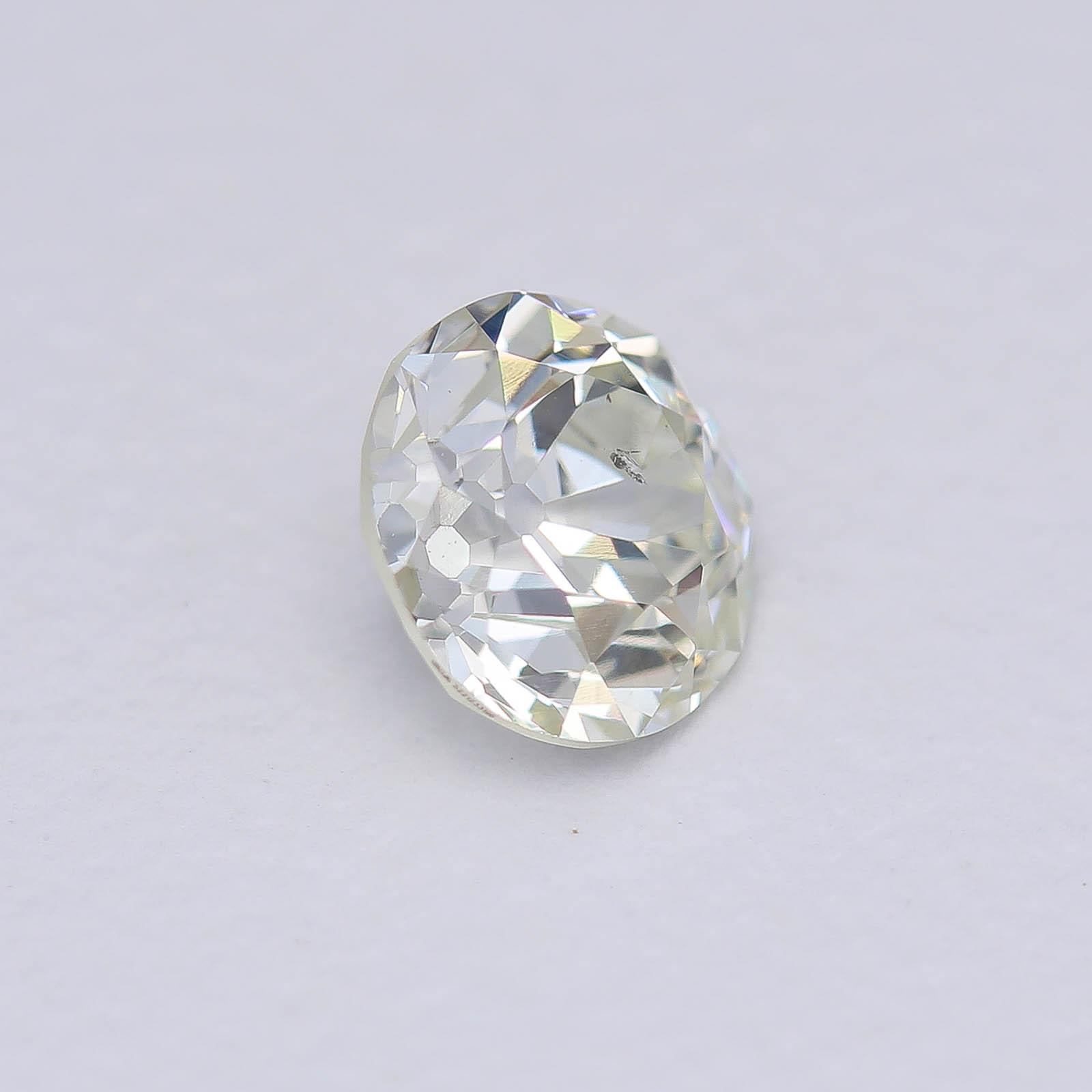 Wonky wonka of oldies...this early Old European is very forgiving in its symmetry but makes up in brilliance and an incredibly prismatic play of light. We addresses its top and bottom from nicks and chips and now it's ready to rock for another 100 yrs.