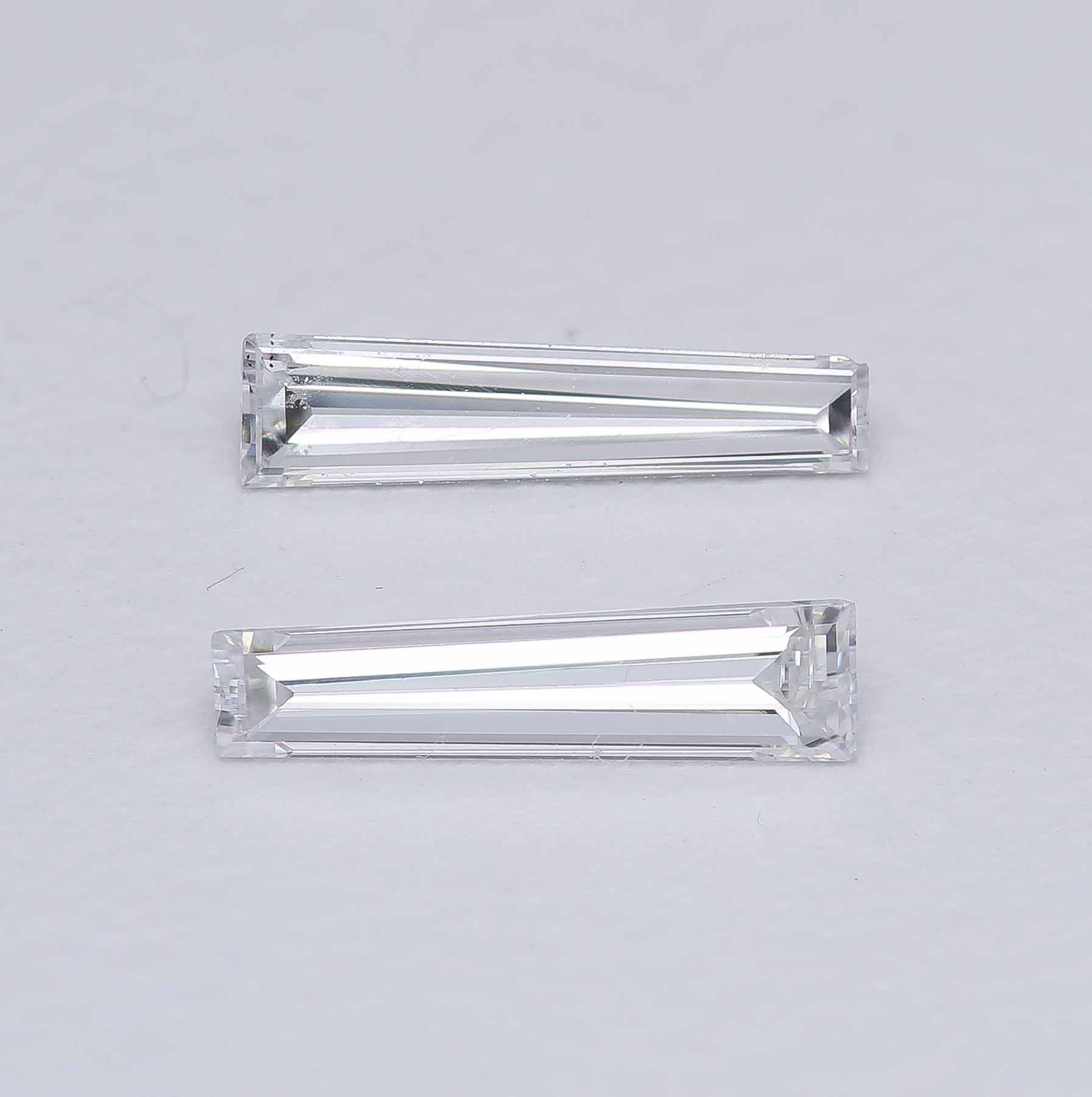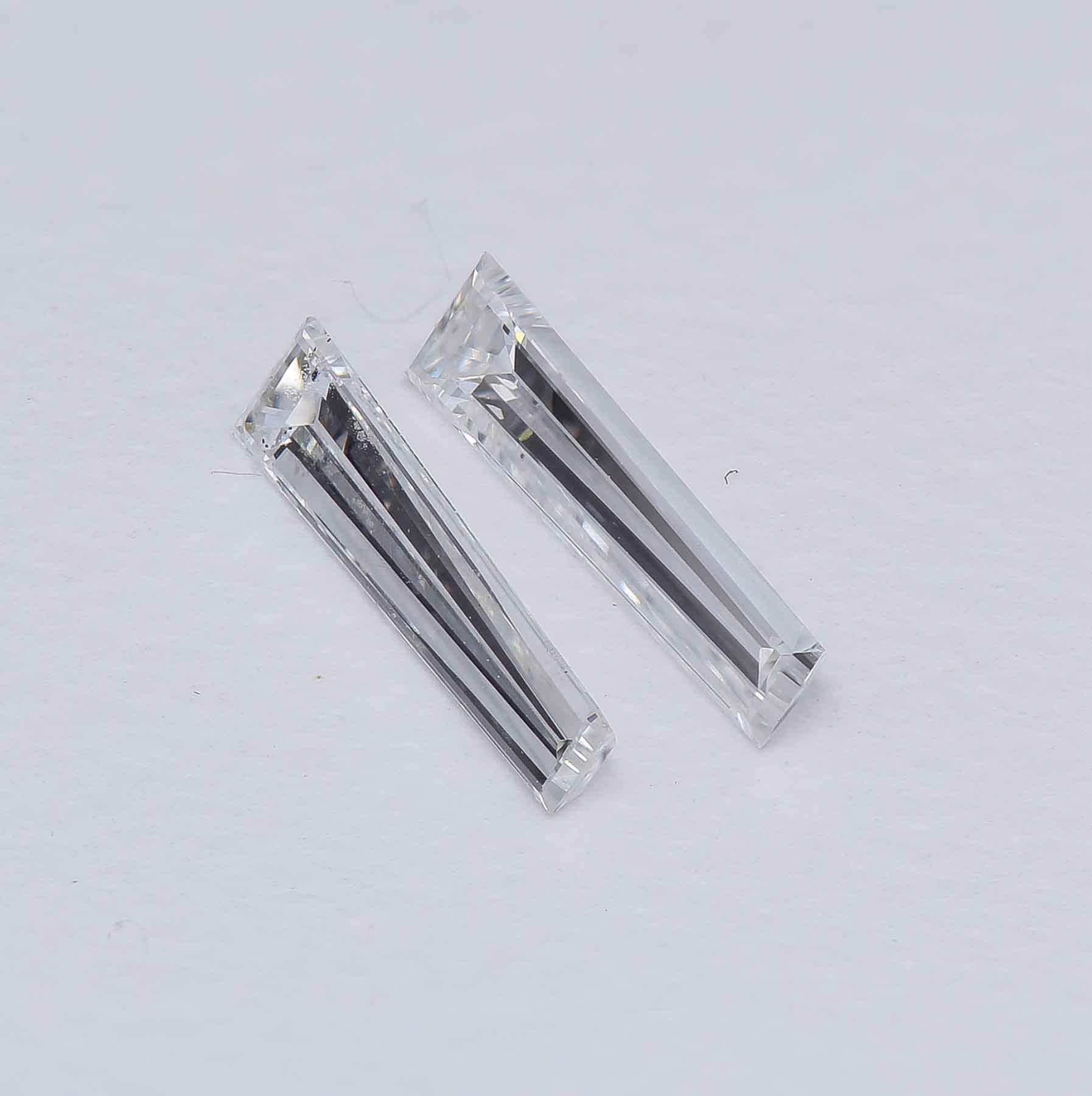 Striking pair of Tapered Baguettes, almost 8mm in length. and ice cold white in color! Ready for your next project!